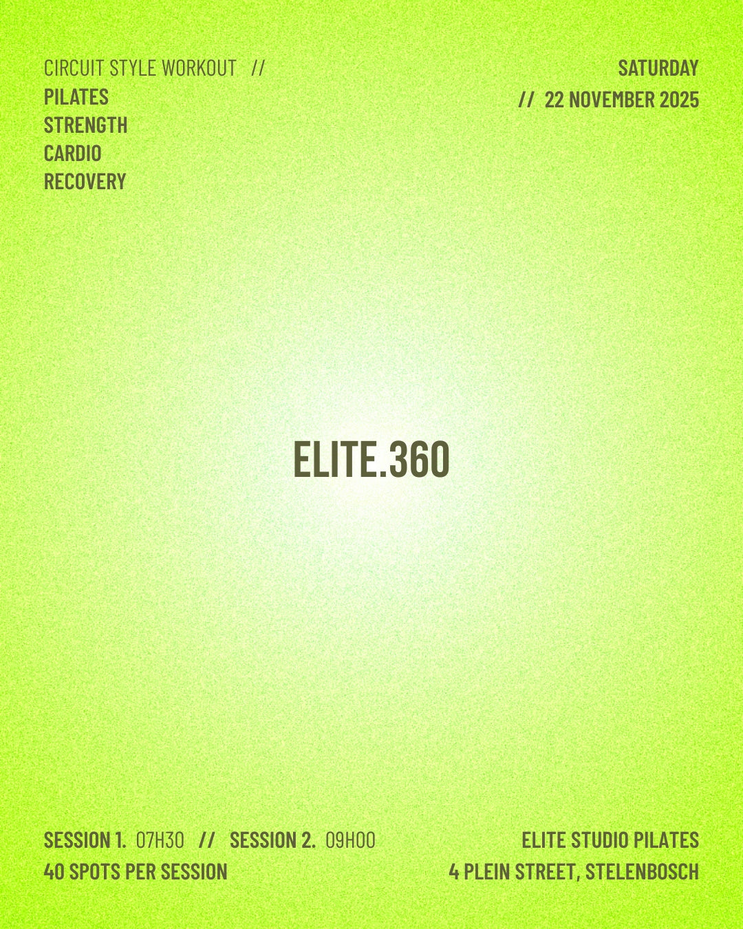ELITE Gym and ELITE Studio are coming together to bring you two high-energy sessions right here in Stellenbosch! 💕 Expect an electric atmosphere with a live DJ, good vibes, and partner brands bringing the fuel.